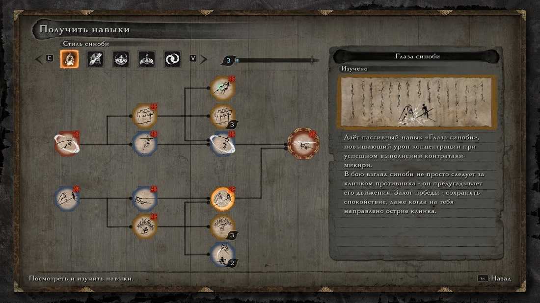 2) Далее качаем микири и глаза синоби. Без преувеличения мастхев против всех видов врагов.