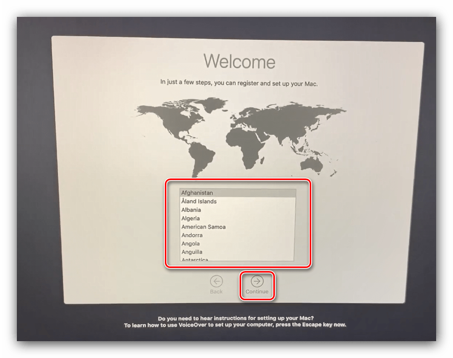 Некоторые версии macOS предлагают также выбирать часовой пояс и раскладку клавиатуры.