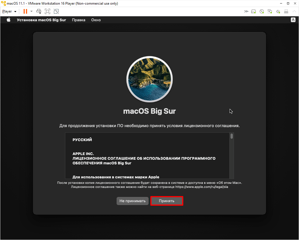 Готово, вы установили macOS на виртуальную машину VMware Workstation Player.