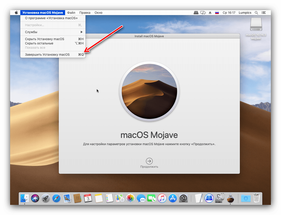 Используйте стрелочки на клавиатуре, чтобы выбрать пункт «Install macOS».