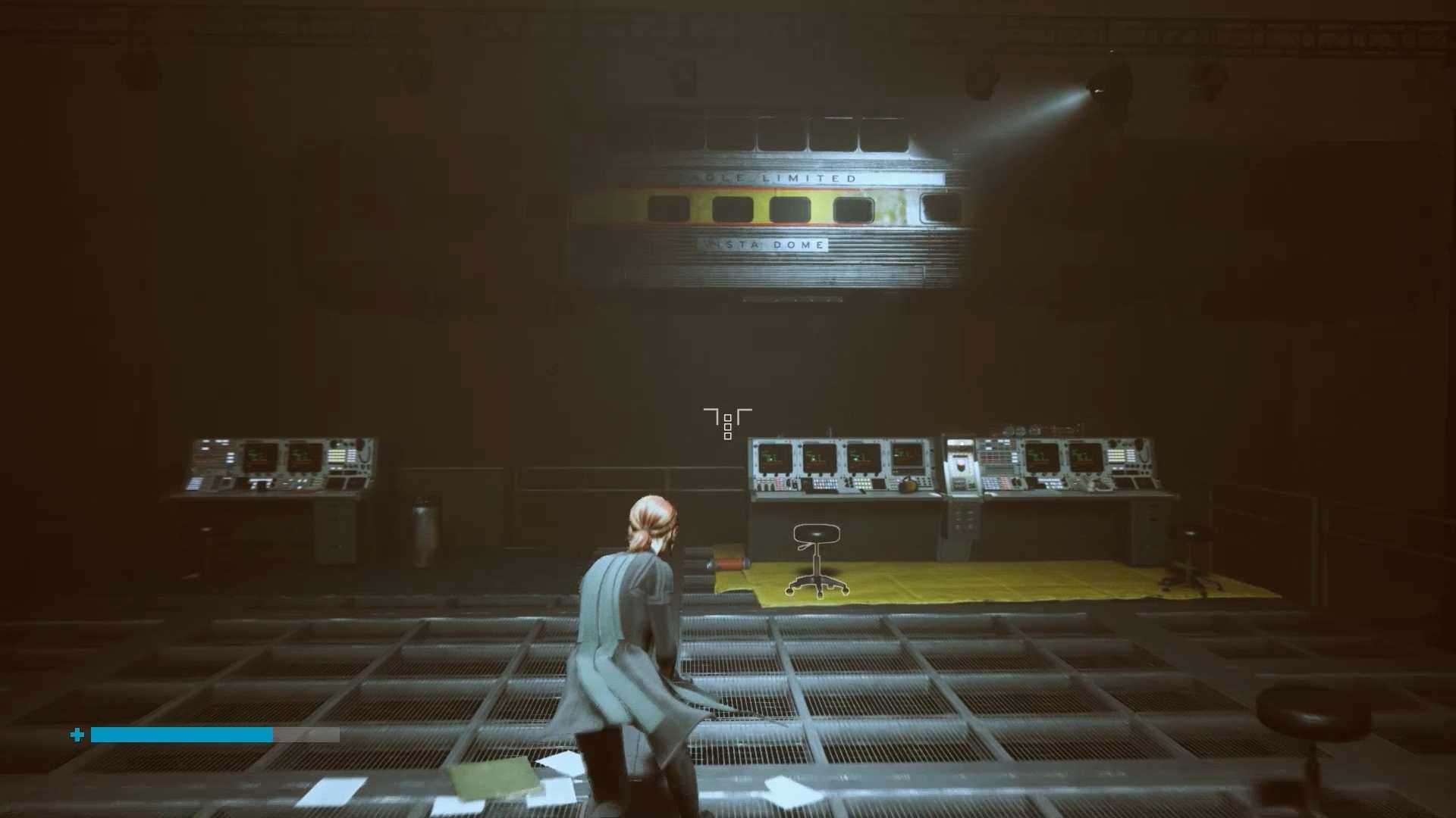 Наконец, заберите еще один куб. Метните к последней активированной тумбе, переместитесь туда же, на вершину, и посмотрите в последнее темное место, где стоит монстр. Там есть другая тумба. Метните в нее куб, перепрыгните и активируйте две панели, чтобы полностью осветить помещение и спугнуть монстра. Соберите все папки, прослушайте магнитофоны, а после активируйте лифт. Взаимодействуйте с интеркомом, чтобы пообщаться с Лэнгстоном. Задание завершится.