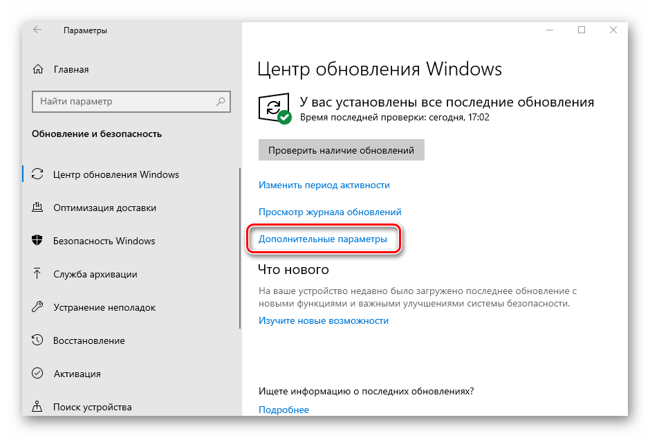 Готово! Теперь, чтобы убедиться что все работает, заходим в центр обновлений и запускаем обновления, затем переходим в «Дополнительные параметры» и видим: