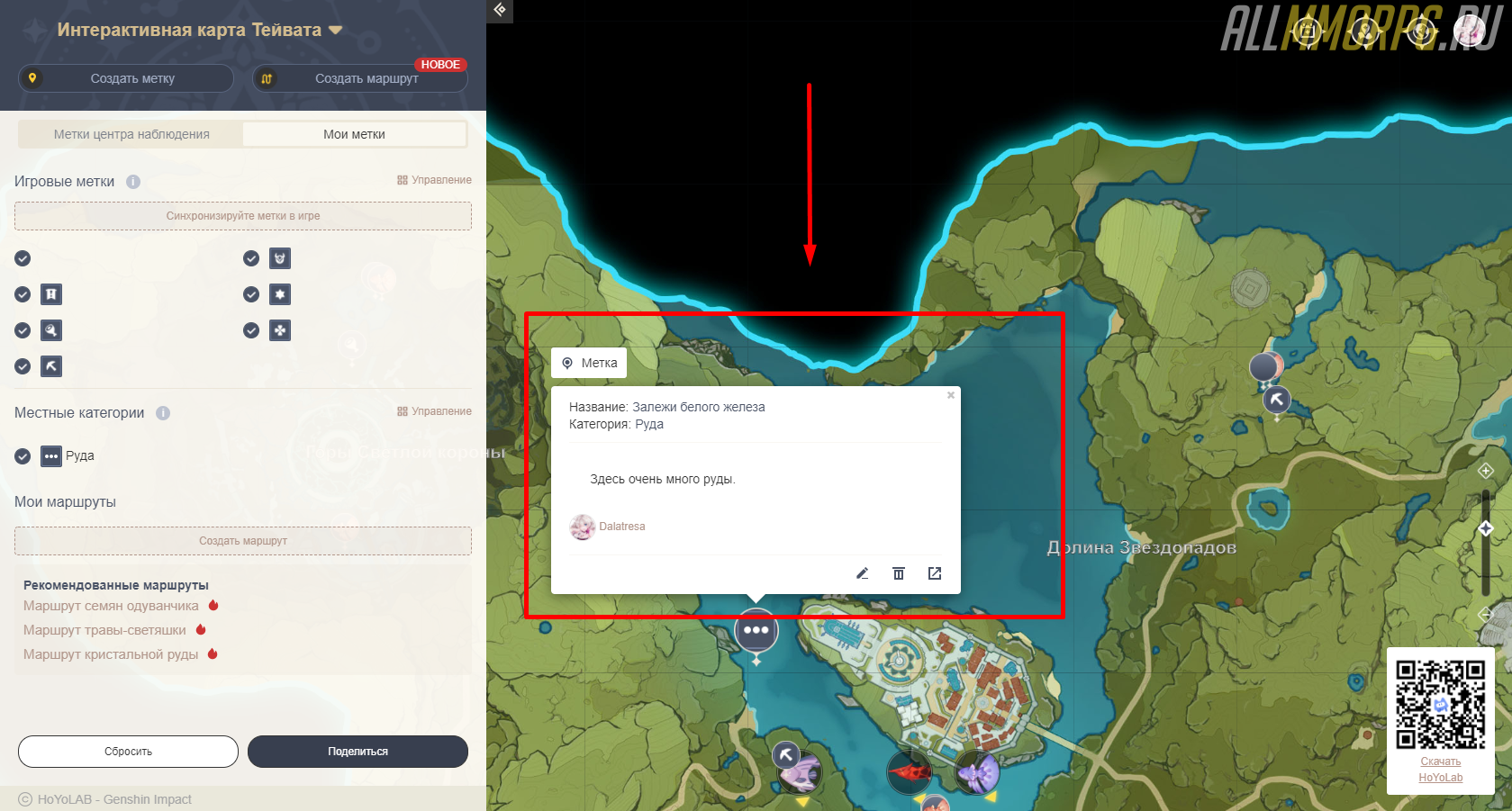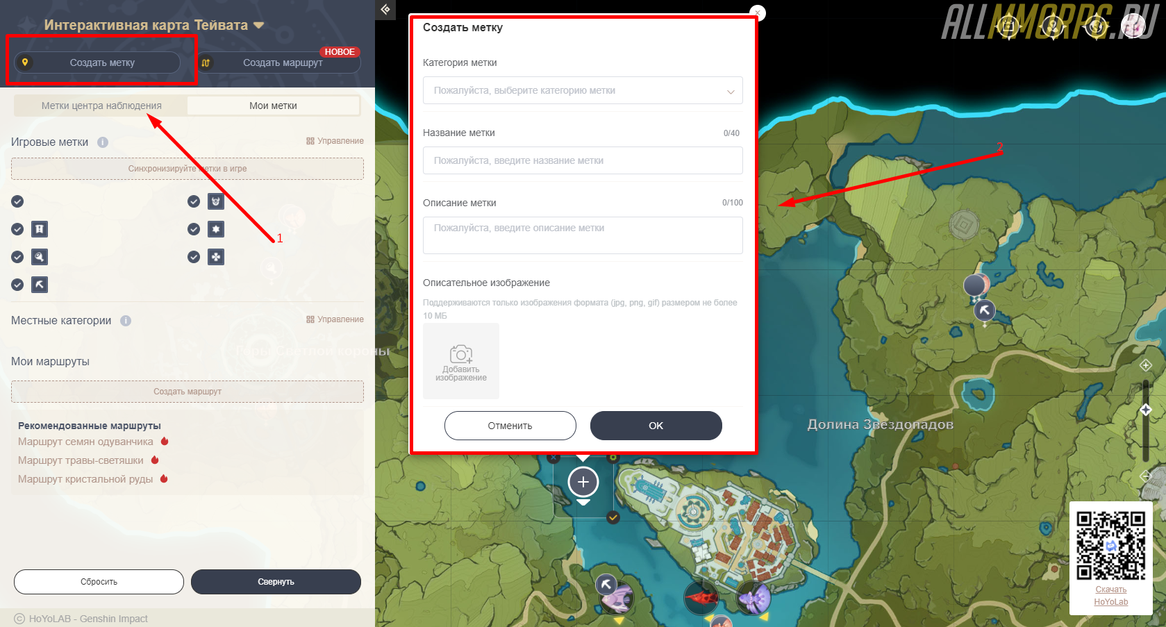Как рисовать маршрут на интерактивной карте Genshin Impact: