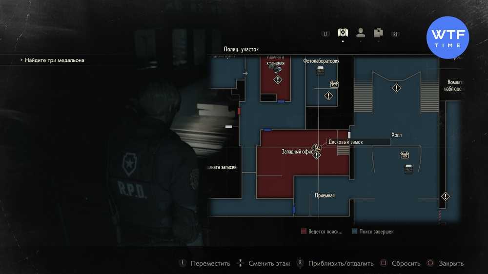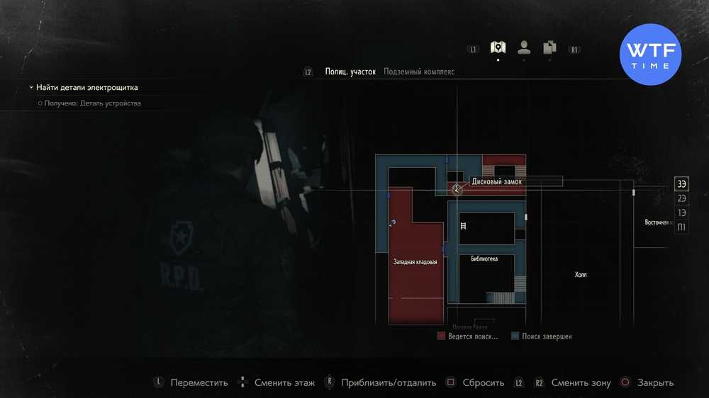 На рисунке выше показано расположение сейфа — это небольшая комната в Западном офисе на первом этаже полицейского участка. Вы можете посетить это место в первый раз вскоре после использования переключателя в Холле.