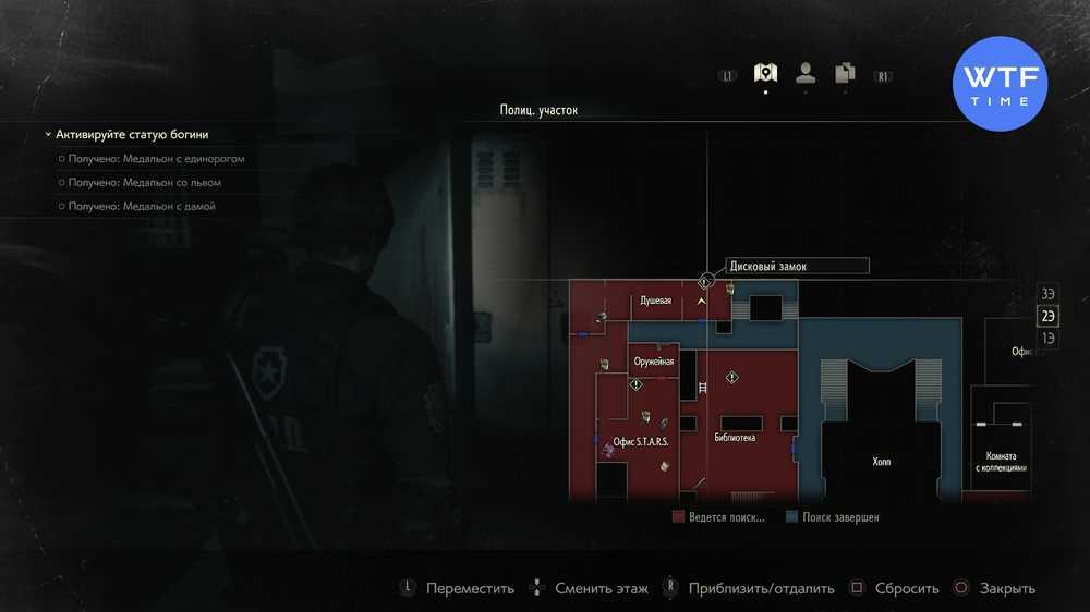 В главном зале находится небольшое отделение полиции. Один из столов принадлежит Леону. Однако он заблокирован двумя замками. Как открыть стол Леона — сейчас узнаете.