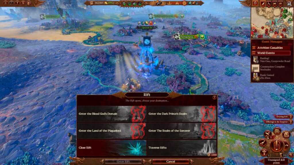 Единственный способ остановить этот процесс — физически направить армии в разломы, чтобы закрыть их и остановить распространение коррупции. Однако будьте осторожны, так как вам нужно будет победить армию Хаоса, чтобы закрыть разлом, и эти армии набирают силу по мере продолжения кампании.