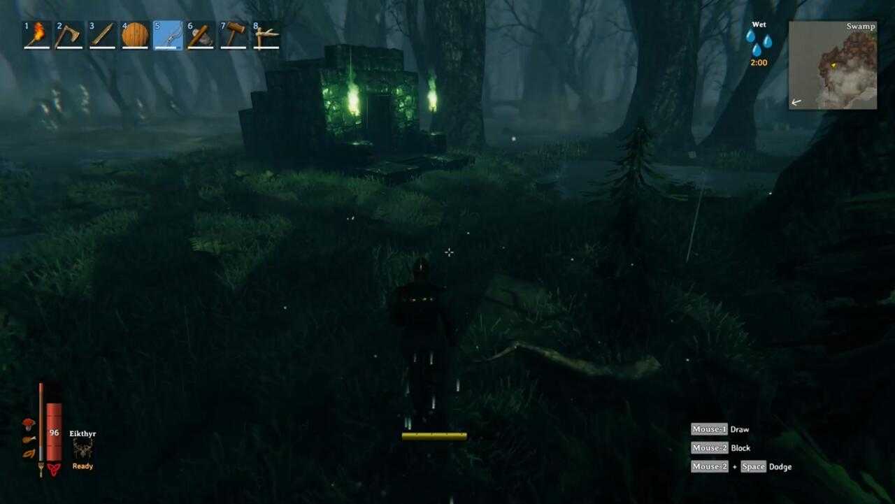 В отличие от погребальных камер в Шварцвальде, Затонувшие склепы болотного биома Вальхейма достаточно легко обнаружить.