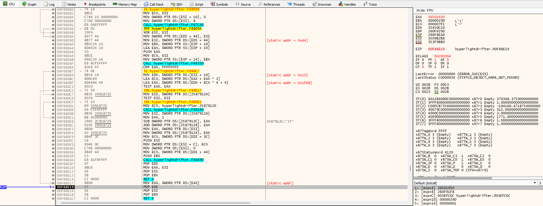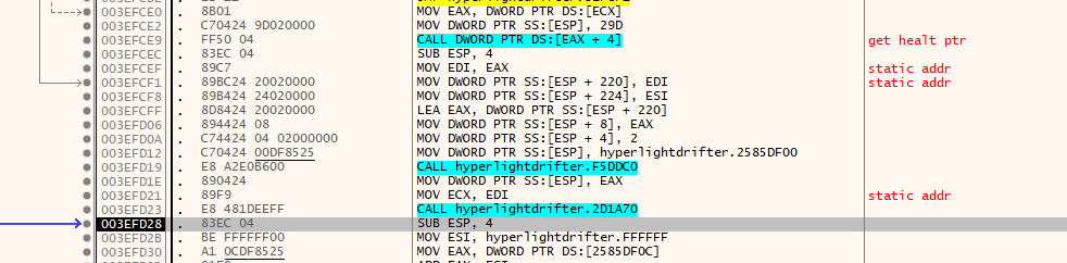 После того как мы узнали адрес , из которого получается адрес значения hp, начинаем выходить из функций. При этом внимательно отслеживаем, что передается им в качестве параметров. Спустя пару выходов мы наткнемся на следующее.