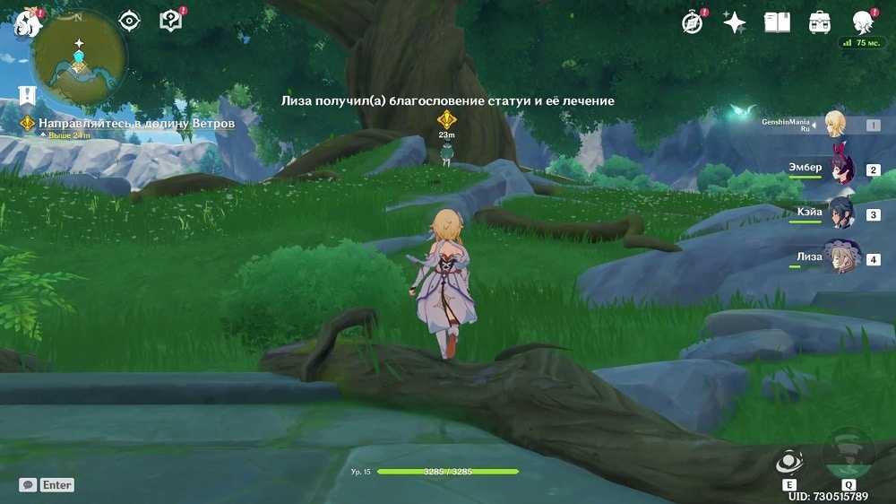 Не закончив беседу Венти убегает, чтобы уединиться и тем самым поговорить на более важные темы. А именно, где достать Небесную лиру. Мы найдем его в Долине Ветров рядом с гигантским деревом (Древо истоков), просто следуйте за сюжетным маркером на карте.