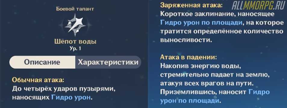 - Элементальный навык. Он хоть и лечит, но вместе с этим накладывает на персонажей гидро статус. Это делает Барбару неподходящей для сражения с крио противниками. Из-за этого недостатка немало опытных игроков забрасывают персонажа.