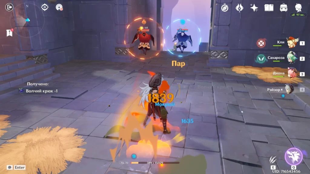 После опроса, Дайнслейф станет нашим «напарником» как и обещал. Вместе отправляемся в храм сокола. Здесь нужно будет пройти сюжетный инстанс. Внутри нас будут ждать гидро и пиро маги бездны, учитывайте это при подборе группы.