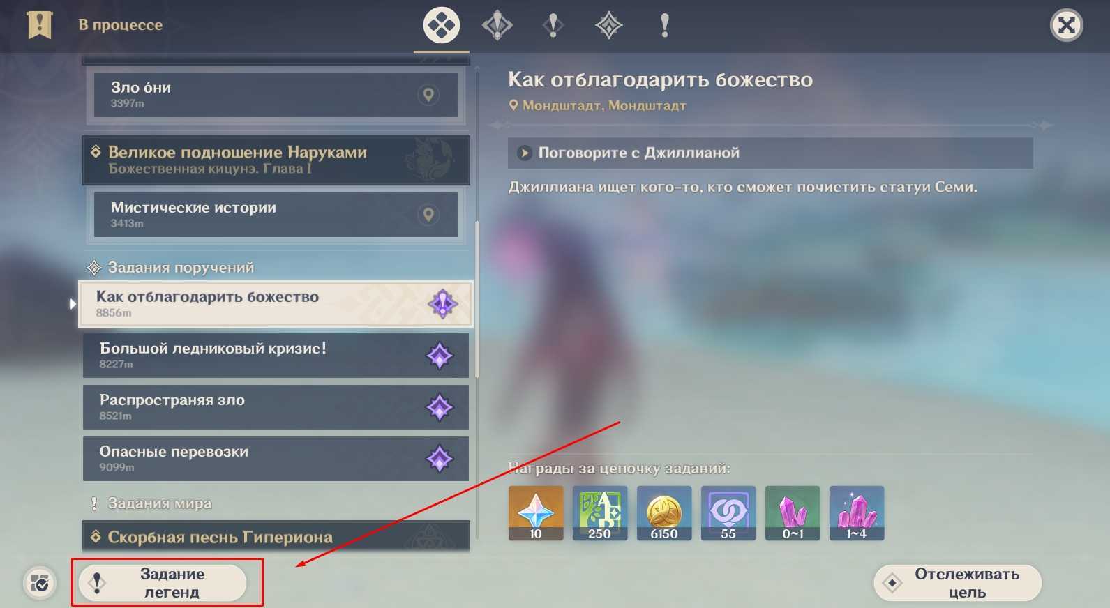 Когда выполните все эти условия, откройте журнал квестов, перейдите в раздел «Задания легенд» и разблокируйте нужную квестовую цепочку.