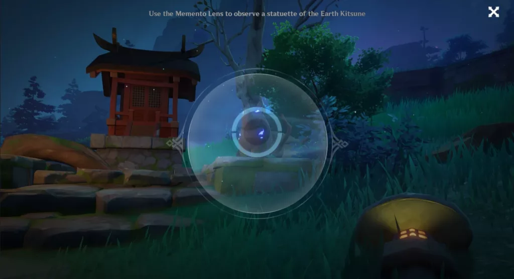 - Вернитесь в заброшенное святилище и используйте линзу воспоминаний.Вернитесь в заброшенный храм и используйте линзу на маленьких статуэтках кицунэ с горящими глазами.
