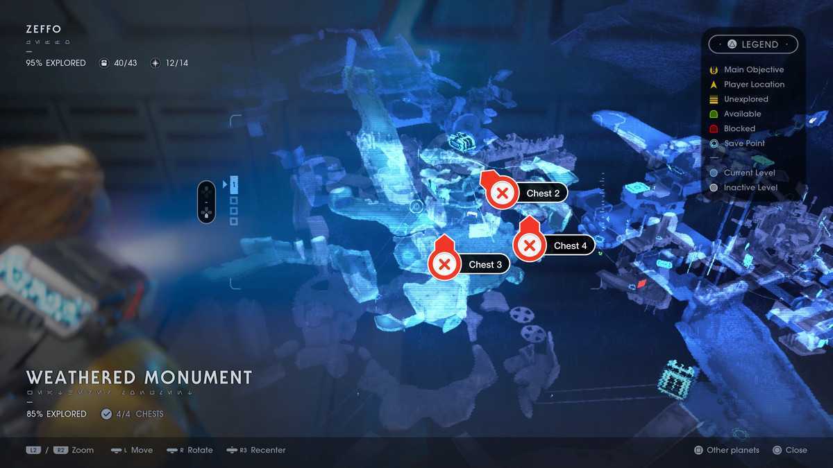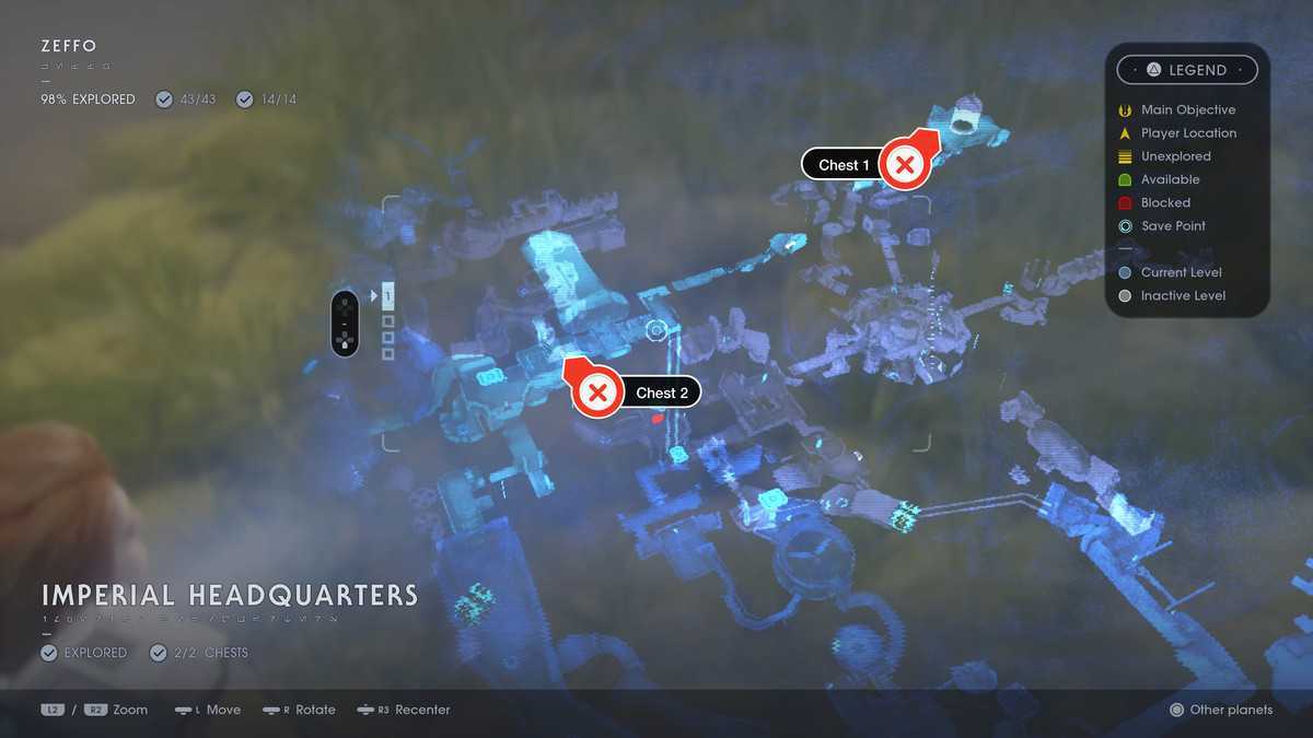 As soon as you get off the Mantis on Zeffo, walk forward and into the small Derelict Hangar. There’s a chest in here. Open it to get the Blue Leader BD-1 skin.