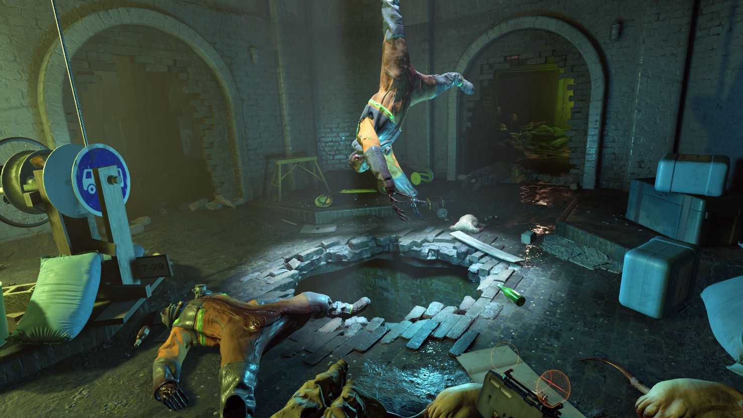Это скорее задачка на смекалку, нежели запутанная головоломка. Когда будете исследовать канализацию, обязательно наткнётесь на врага, которого подвесили. У него в руках дробовик и вы наверняка захотите заполучить его. Сложность в том, что грави-перчатка не поможет – солдат вцепился в оружие мёртвой хваткой.