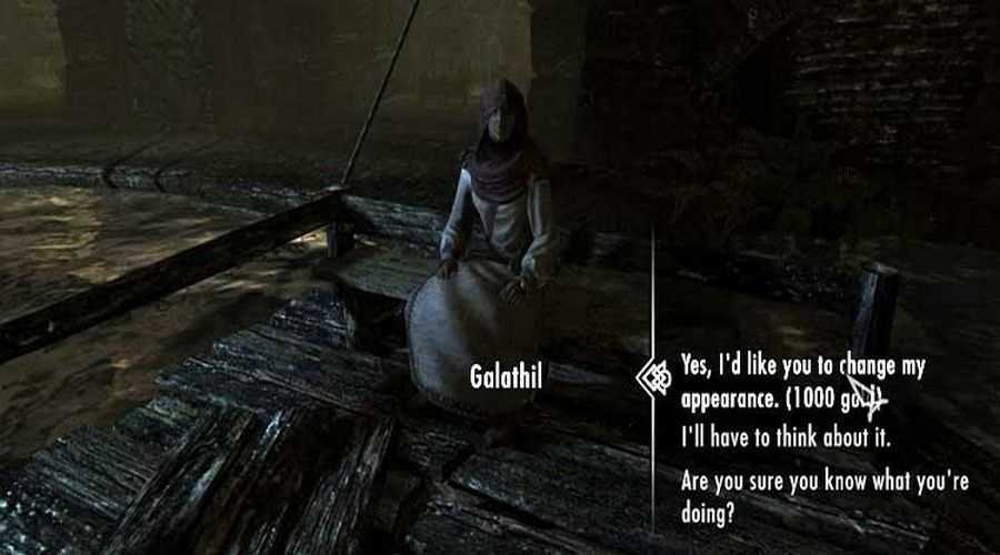 Примечание: Галатиль не сможет изменить ваше лицо, если вы вампир, так как она не может менять лица нежити. Если вы вампир и хотите воспользоваться ее услугами, вам нужно будет излечиться от вампиризма.