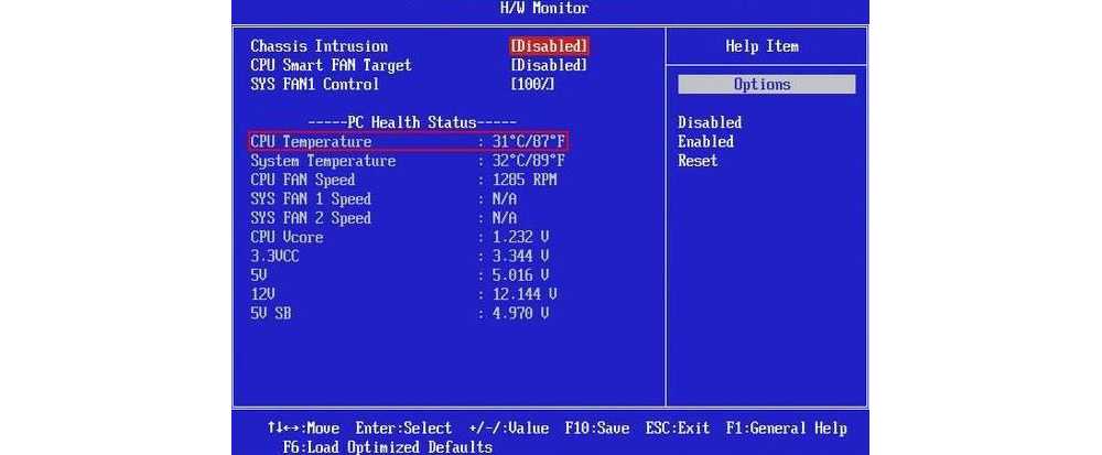 Для поверки температуры CPU в меню BIOS (UEFI) необходимо следовать инструкции: