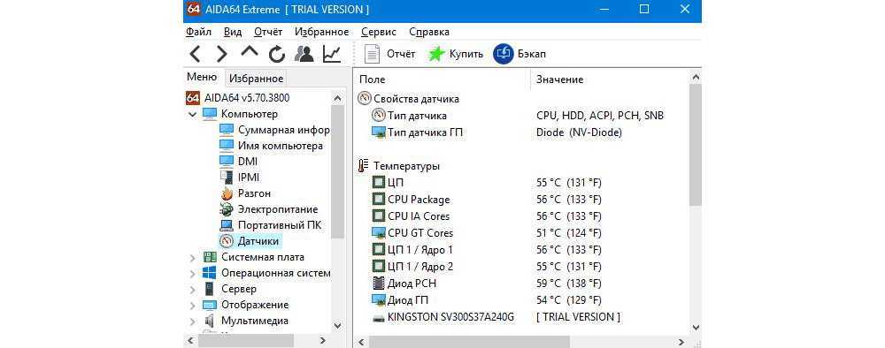Узнать температуру с помощью AIDA64 можно, выполнив такие действия.