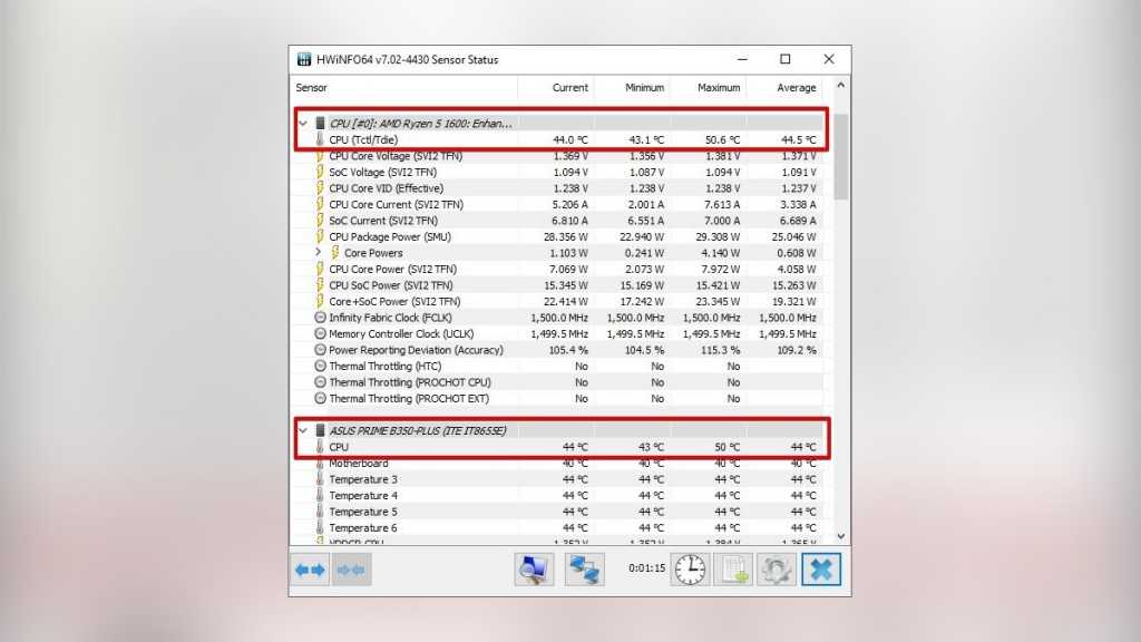 Продвинутая программа со множеством настроек и параметров. Запустите программу с галочкой Sensors-only, затем найдите строчку со своим процессором или материнской платой: для мониторинга температуры они используют разные сенсоры. Допустим, для процессора Ryzen 1600 можно смотреть показатель CPU (Tctl/Tdie).
