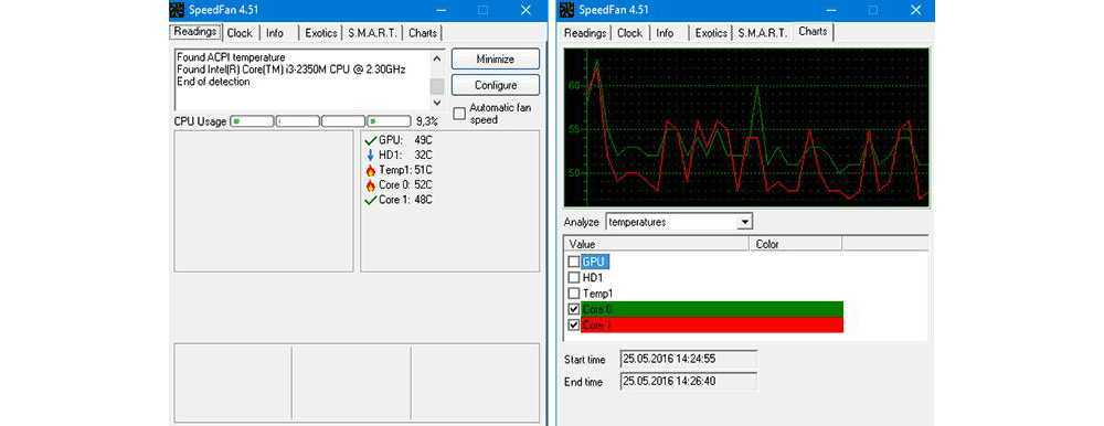 SpeedFan: Помимо контроля скорости вентилятора, напряжения и температуры процессора с помощью внутренних датчиков вашего компьютера, SpeedFan также может получить доступ к информации SMART для определения температуры вашего жесткого диска. Небольшое приложение предлагает управление вентиляторами и простые для понимания графики.