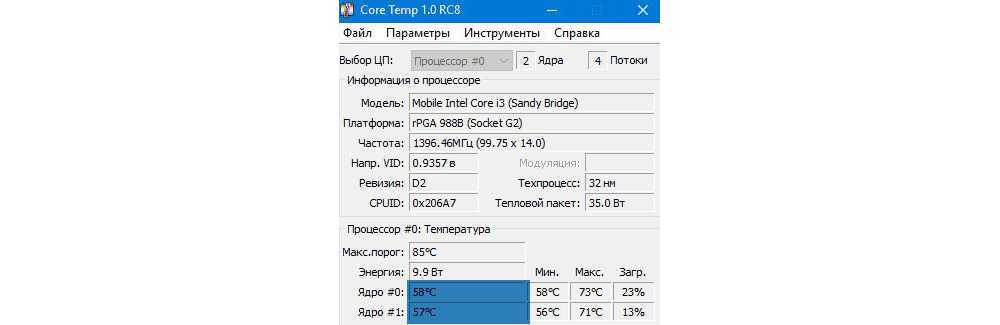 Все это необходимо, чтобы узнать температуру ЦП и соотнести ее со стандартными значениями. В целом, показатели не должны превышать 80 °C при серьезной, ресурсоемкой нагрузке, и быть не более 45 °C при легкой загруженности.
