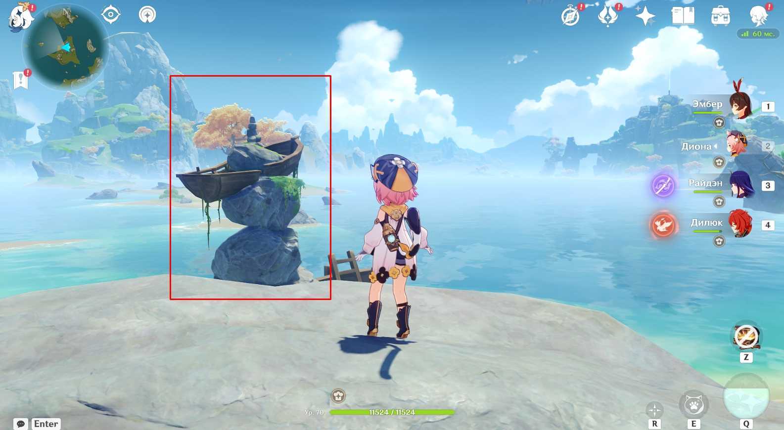 - В камнях есть обычный сундук, который не видно. Просто идите по камню, пока не появится кнопка взаимодействия.