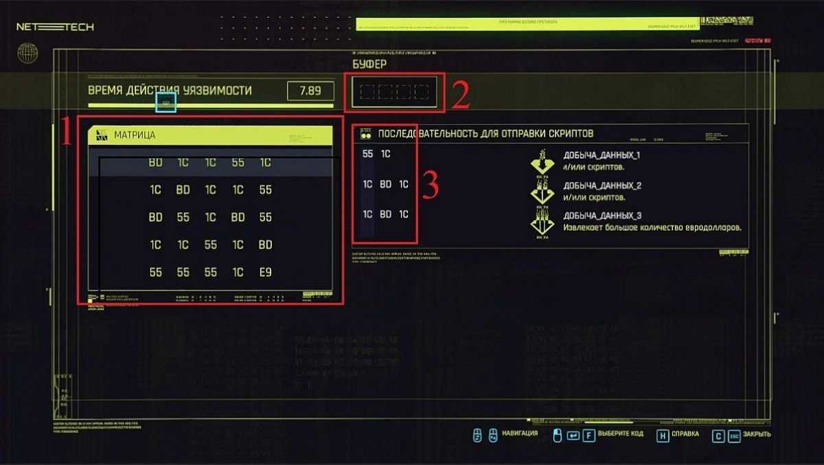 - комбинации (Последовательности) символов, которые необходимо ввести в для окно ввода. В примере на картинке это «55-1C», «1C-BD-1C», «1C-BD-1C». хотите вы Если получить максимальную награду за взлом, вы ввести должны все три последовательности в окне в порядке же том, в каком они вам представлены.