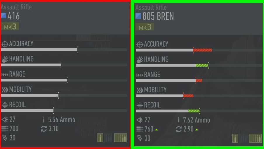 The 805 Bren would sit next to the 416 in terms of what it’s good for. It can do well in every situation. It’s good for long-range and short-range. Has very good accuracy as well as good damage. But It has something that makes it better than the 416. Its handling. Even though the stats say it’s not very accurate, It’s one of the best in accuracy, plus it’s easy to control. These two characteristics make this AR a great companion in the battle.