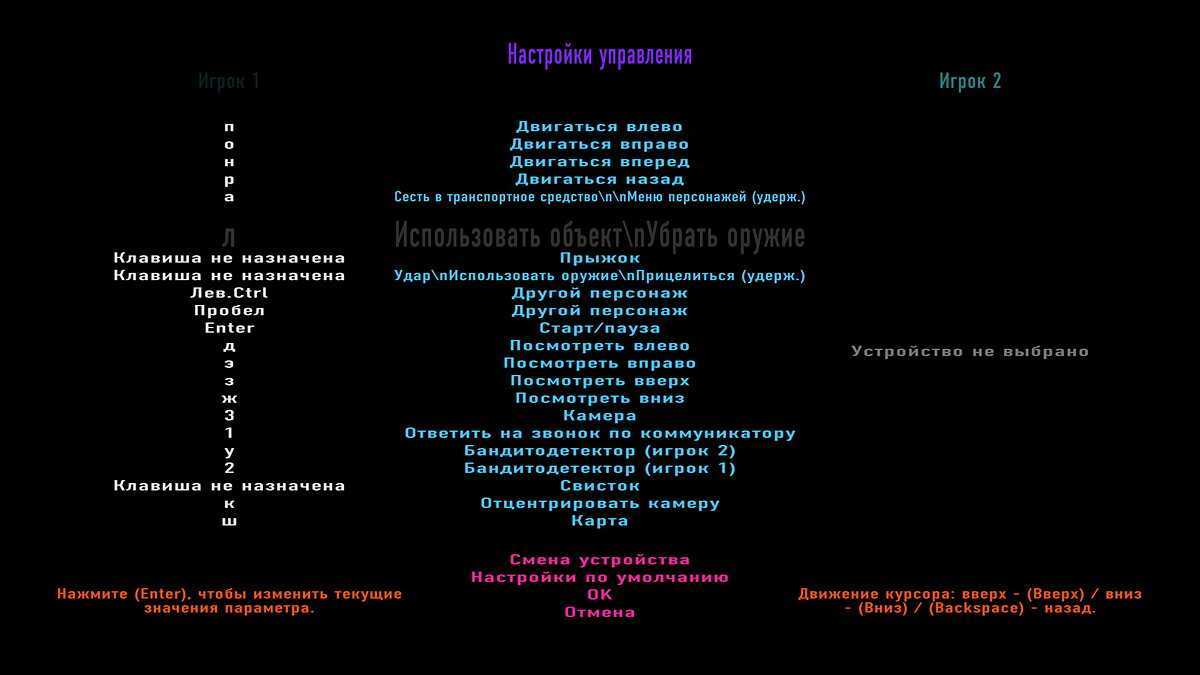 Самый большой минус LEGO City Undercover — это управление. Прозвучит странно, но в TT Games никогда не слышали о клавиатуре и мыши. Иначе невозможно понять, почему в их игре настолько неудобное, плохое управление. Разработчики даже не удосужились сделать подходящее меню настроек, ограничившись этим: