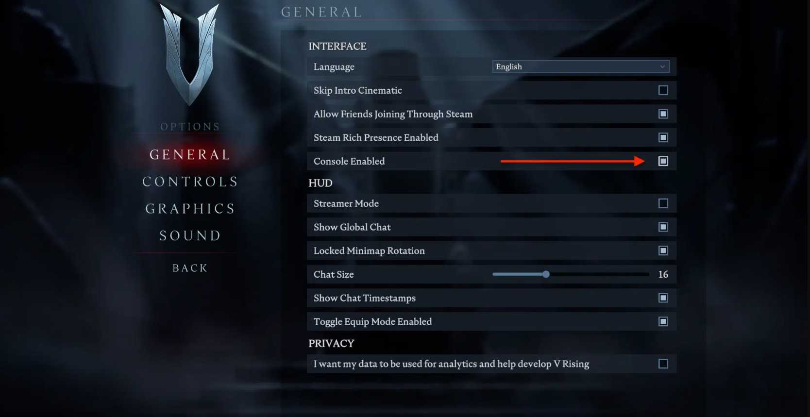 Как активировать консоль на V Rising?