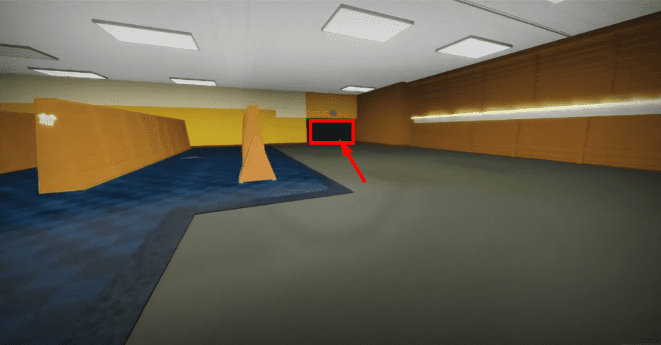 Продолжайте идти вперед — вы увидите высокую, узкую комнату, войдите в комнату и идите до конца, где вы найдете еще одну кнопку. Нажмите ее.