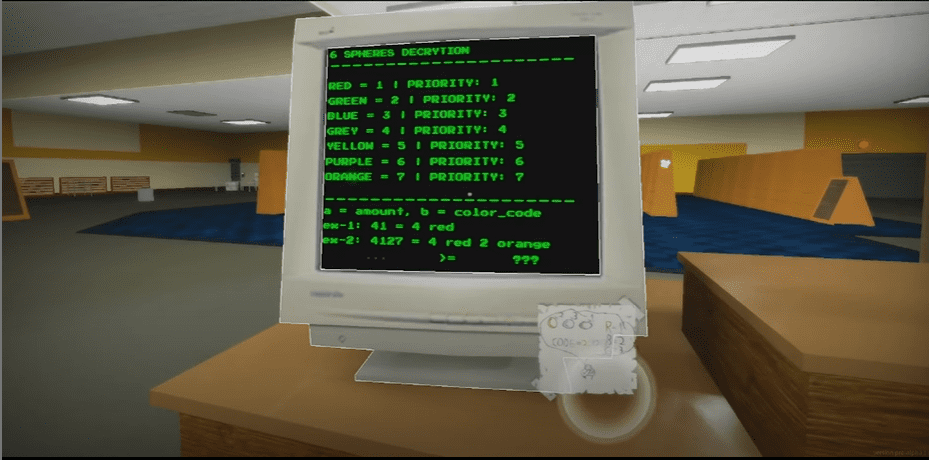 Третий уровень — самый длинный, на нем вам нужно выполнить две задачи. Достигнув уровня 3, вы повсюду увидите офисные помещения, вам нужно зайти внутрь офисных помещений, отыскать зеленую кнопку и нажать ее.