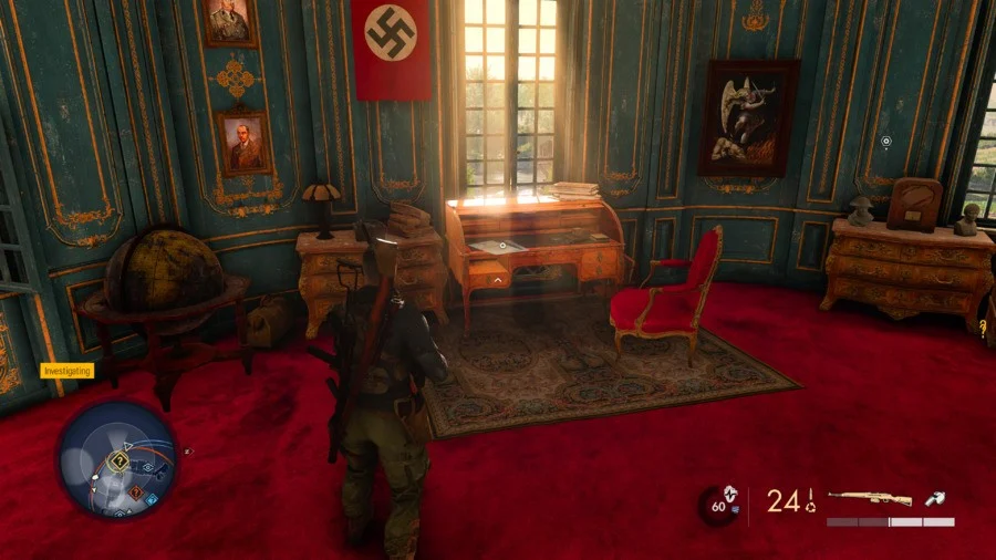 Оружие отличается зумом, размером обоймы, калибром и скоростью полета пули. Ко всем винтовкам нужно привыкать. Карл умеет красться, прятаться в траве, отвлекать противника, делать ловушки (например, минировать трупы). В принципе, никто не запрещает просто штурмовать врага, но это сложно и неинтересно. Ведь, как и в других играх серии, здесь есть рентгеновская камера. Это когда при точном выстреле с большого расстояния нам показывают летящую пулю и момент ее столкновения с целью во всех подробностях. То есть мы видим, как ломаются кости, рвутся внутренние органы… Жестко, но чего скрывать, за это в том числе мы любим Sniper Elite!