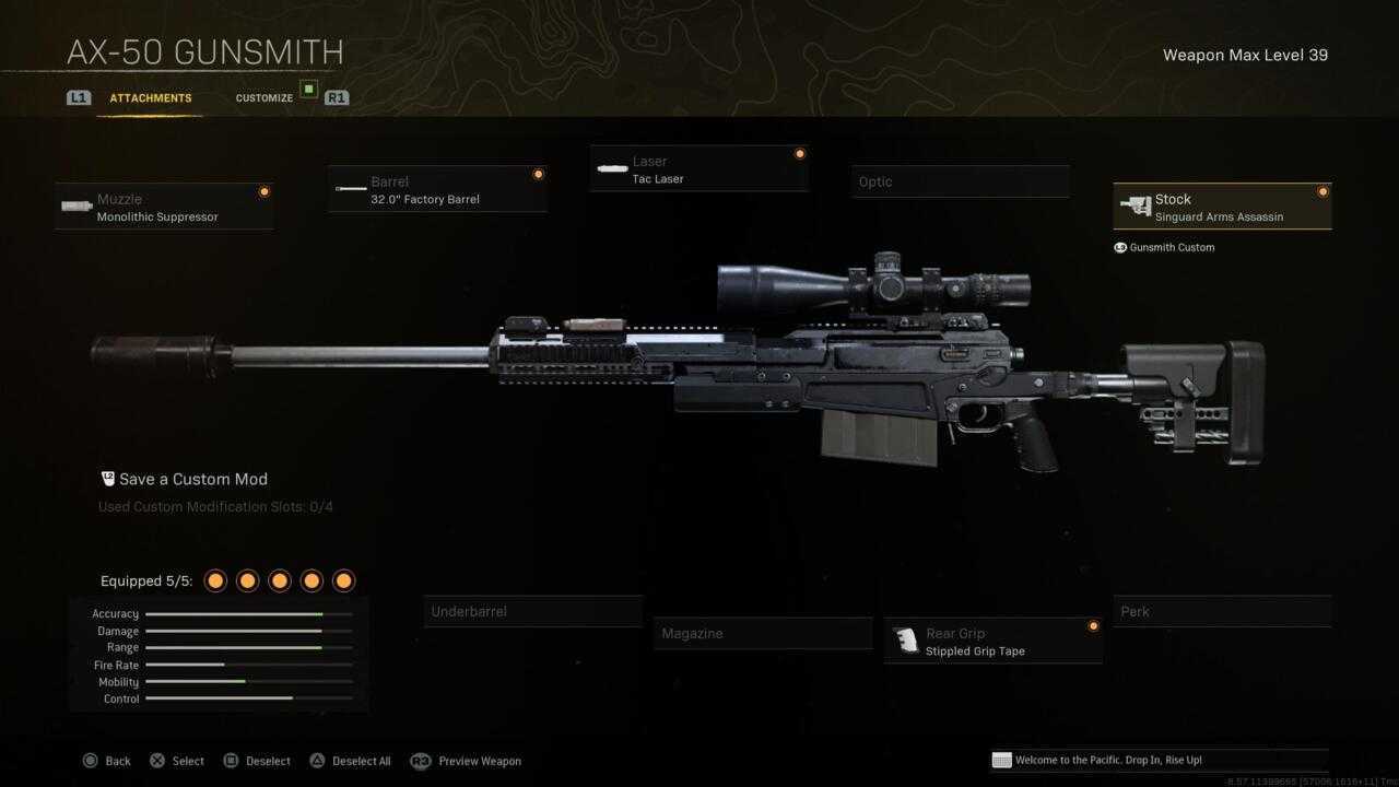 Если вам нужен мощный снайпер, который немного быстрее, чем HDR, для снайперской стрельбы на острове Возрождения, AX-50 из Modern Warfare — отличный выбор для замены ранее популярных снайперов Kar98k и Swiss K31, которые были сильно ослаблены в обновлении 3-го сезона. Рекомендуемые насадки помогут вам увеличить скорость прицеливания и повысить мобильность с AX-50.