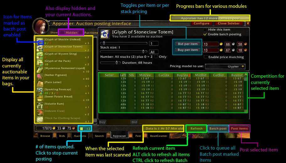 Помогает оптимизировать экипировку путем вставления гемов и зачарования. Показывает, какие камни и куда лучше всего вставить.