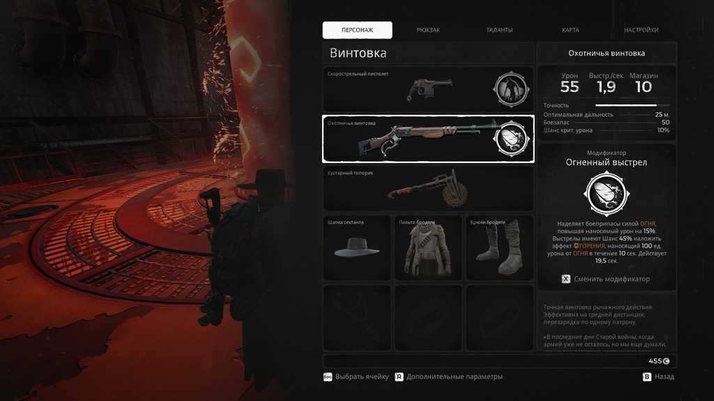 На Колобка лучше зайти в таком сетапе: Два куска комплекта Бродяги нам дадут какое-никакое увеличение урона плюс 15% получим при активации огненных боеприпасов. Шапка нам нужна для пассивной регенерации модификаций оружия.