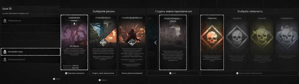Теперь подходим к кристаллу выбираем НАСТРОЙКА МИРА => режим ПРИКЛЮЧЕНИЕ => Создать новое приключение => ПРИКЛЮЧЕНИЕ – ЗЕМЛЯ => Сложность – ОБЫЧНАЯ.