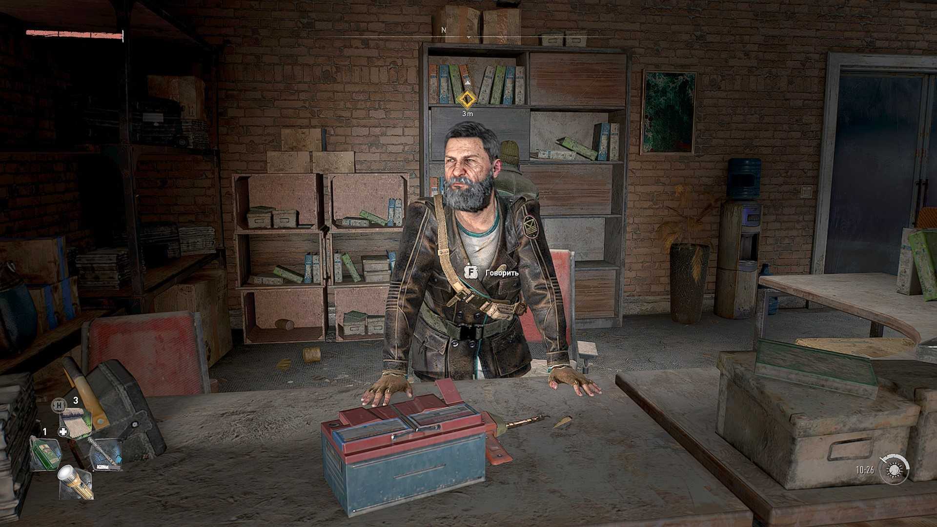 Добираемся до здания, в котором живет торговец. Пробираемся в здание через окно на крыше, находим дверь в вентиляционную шахту, спускаемся на второй этаж. Поставщик воды просит разобраться с зомби на первом этаже. Делаем это и взаимодействуем с дверью, чтобы запустить кат-сцену.