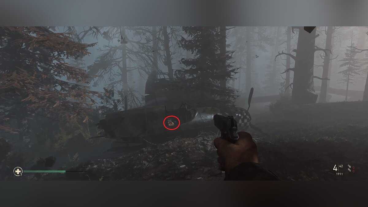 Как только вы достигните зоны с несколькими снайперами и тройкой грузовиков посреди леса, то на одном из ящиков позади машины можно подобрать сигнальный пистолет.