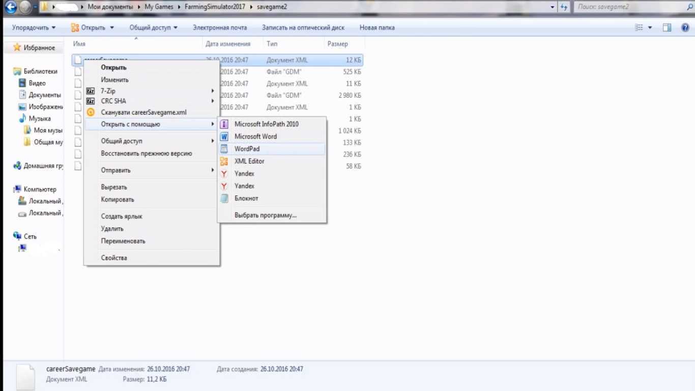 3. В папке «savegame2» вам нужно открыть файл «careerSavegame» при помощи программы Wordpad. Если у вас нет такой программы можно использовать «Блокнот», о том почему его не стоит использовать мы расскажем чуть ниже.