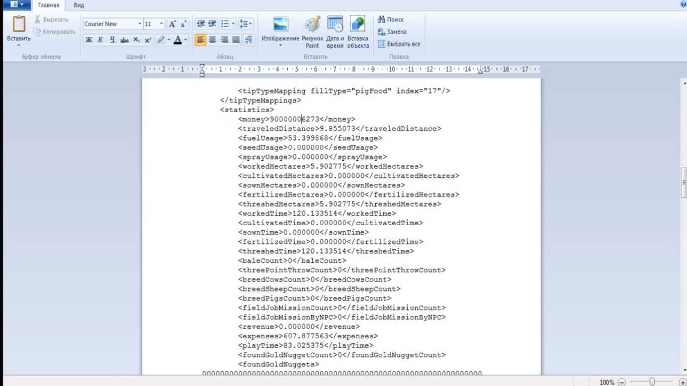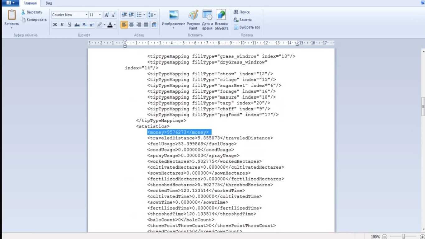 Теперь найдите в этой же папке файл farms.xml и тоже откройте его при помощи «Блокнота». В нем опять найдите слово «money», которое должно находиться в верхней части. Нужная строчка выглядит вот так: