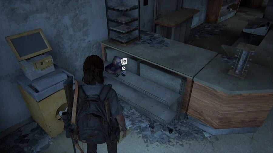 Доберитесь до улицы, показанной на картинке ниже. Эбби может посетить в магазины, расположенные слева и справа. При необходимости вы можете разбить стекло, чтобы попасть внутрь. Один из них закрыт на «неразрушимый» затвор, но мы проникнем внутрь него по-другому.
