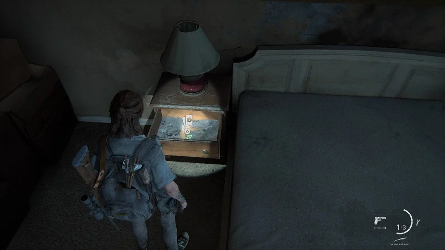 Залезаем через окно в один из номеров мотеля. Проходим через красную дверь следующего номера и открываем ящик рядом с кроватью.