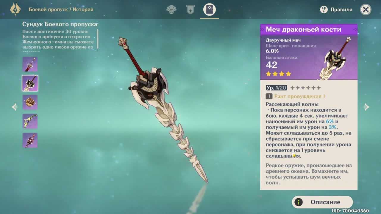 Меч драконьей кости (шанс крит. попадания). Наконец, есть Змеиный хребет из премиум-версии боевого пропуска «Жемчужный гимн».