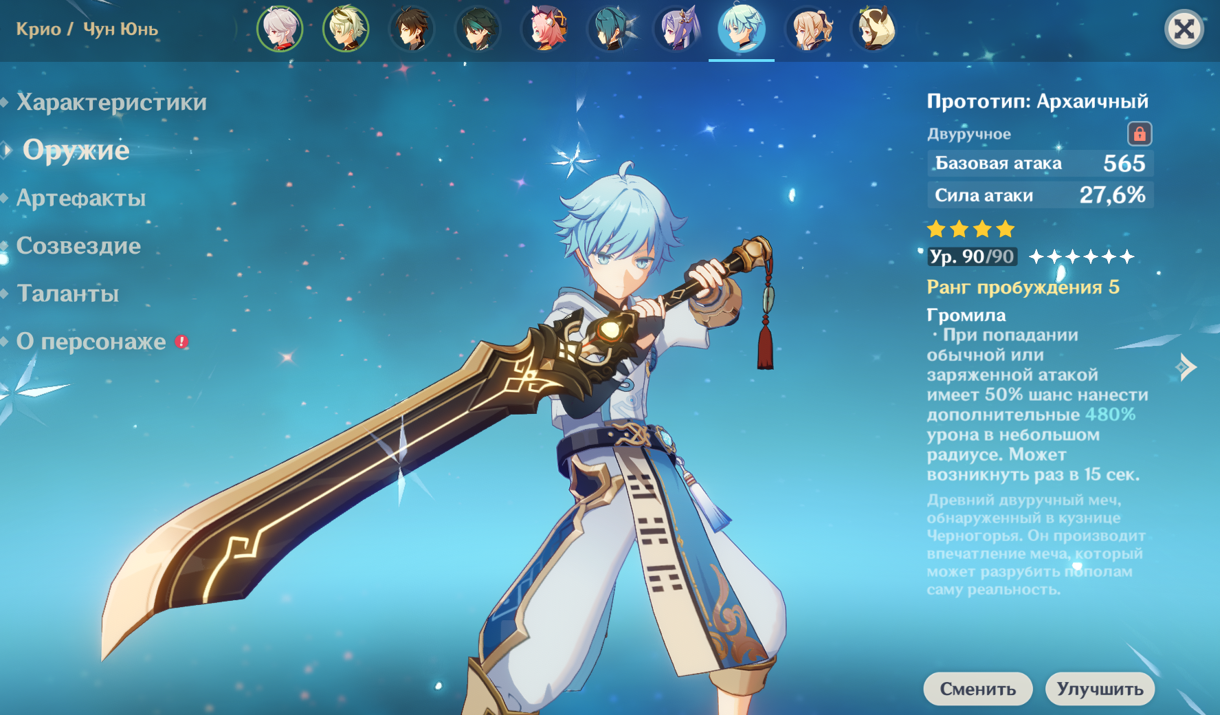 Из этой подборки имеет смысл обратить внимание на «Прототип: Полумесяц», если вы играете Эмбер, «Прототип: Архаичный» для мечника с двуручным мечом, «Белую тень», если ваш саппорт — Ноэлль, «Прототип: Янтарь» для Барбары и «Прототип: Звездный блеск» для копейщиков, если они есть (например, Сян Лин).