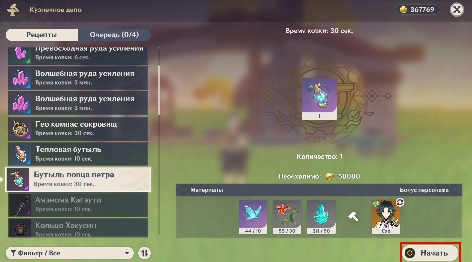 Время ковки всего 10 секунд. Когда предмет будет закончен, нажмите кнопку «Получить».