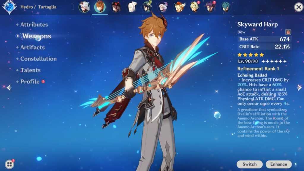 Лучшее оружие Чайлда будет пятизвездочным. Громовой пульс или Полярная звезда. В Skyward Harp также представляет собой отличную альтернативу с почти незначительной разницей в уроне по сравнению с Полярной звездой. Другие пятизвездочные пикировки, такие как Amos ‘Bow, также работают достойно.